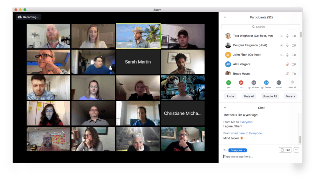 Everyone was rerouted back to the main event and discussed their findings and feedback in a three-minute chat storm. After the discussion, Douglas asked everyone to submit helpful and inspiring takeaways from the workshop in the group chat. Some are shared below: