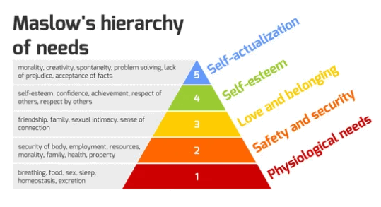 Ever heard of Maslow’s hierarchy of needs? Abraham Maslow was an American psychologist who theorized human decision-making is influenced by an underlined hierarchy of needs. In the 1940s he outlined the 5 “core needs” every human has that form the foundation of behavioral motivation. The needs were presented in a pyramid shape with the most basic needs at the bottom and higher-level needs at the top: